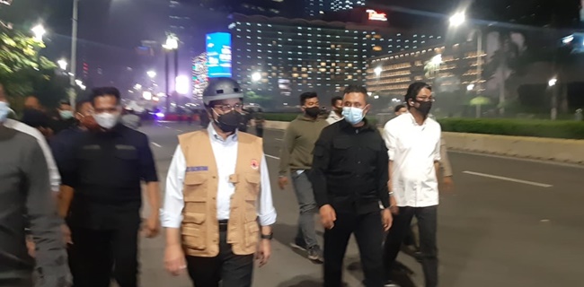 Anies datang dengan menggunakan rompi lengkap dengan memakai helm. Kedatangan Anies ini untuk memastikan kondisi di lokasi dan melihat yang dampak dari unjuk rasa yang berujung ricuh.