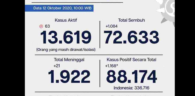 Dengan demikian, berdasarkan data dari corona.jakarta.go.id‬ jumlah kasus terkonfirmasi secara total di Jakarta sampai hari ini sebanyak 88.174 orang.