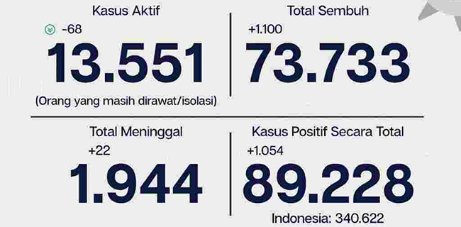 corona.jakarta.go.id‬ jumlah kasus terkonfirmasi secara total di Jakarta sampai hari ini sebanyak 89.228 orang.