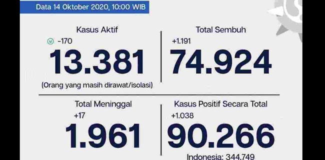 Tercatat pada hari ini, Rabu (14/10), jumlah kasus positif bertambah 1.038 orang.