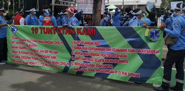 Mereka pun memiliki sejumlah tuntutan. Di antaranya meminta agar hak untuk berserikat tidak dirampas, audit keuangan AGD, Pencairan Insentif pegawai, jaminan BPJS, dan segera mengganti Kanit UGD beserta kroninya.