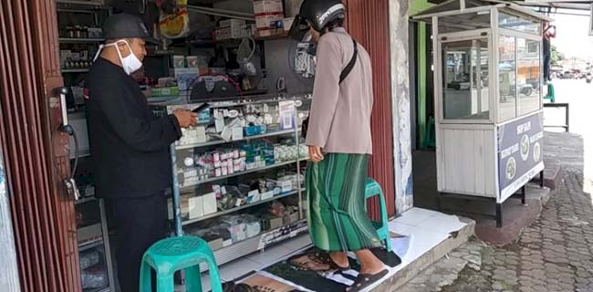 Terdapat empat buah poster yang diletakkan di lantai toko listrik milik Karyo di Jl Jenderal Sudirman, Kelurahan Awirarangan, Kecamatan Kuningan.