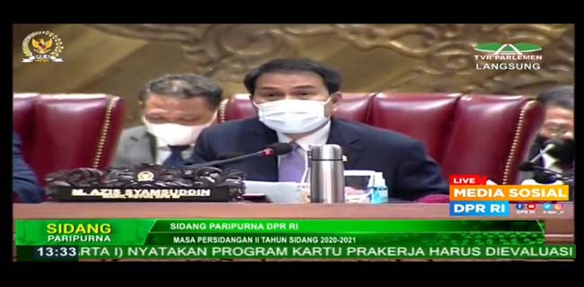 Rapat yang dipimpin oleh Wakil Ketua DPR RI Fraksi Golkar Azis Syamsuddin itu dihadiri oleh 321 anggota dewan.