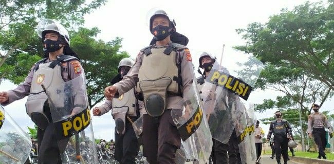 Kantor Berita RMOLBanten, ratusan personel gabungan langsung membuat barikade yang berjarak sekitar 300 meter dari Mapolres Tangsel.
