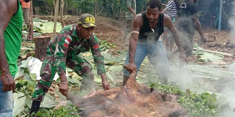"Saya ucapkan terima kasih pihak Satgas Yonif MR 413 Kostrad mau membantu upacara adat kami, semoga di bulan yang penuh kasih ini, Tuhan selalu memberkati Kalian," ucapnya.