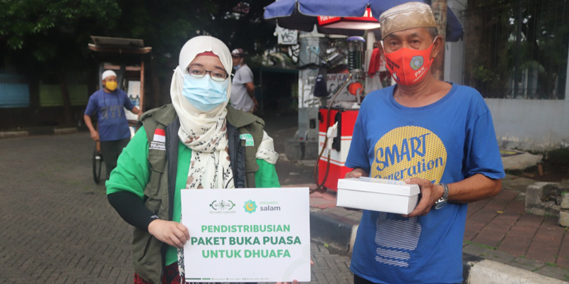 Selain membagikan paket buka puasa untuk para dhuafa, Tim NU Care-LAZISNU juga menyediakan masker untuk dibagikan kepada para dhuafa jika ketahuan tidak menggunakan masker.