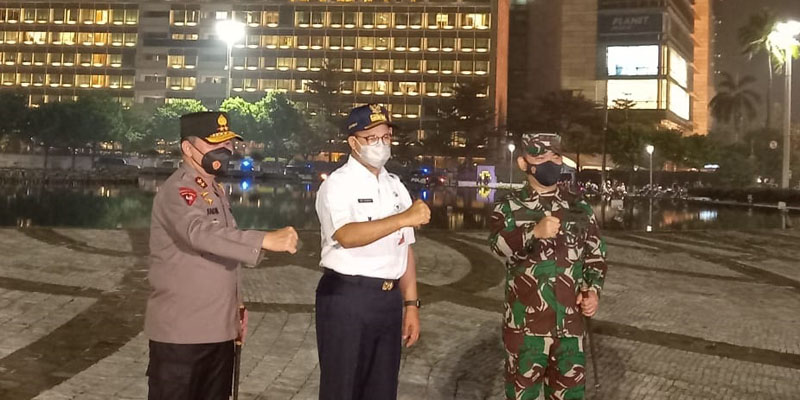 Anies yang didampingi Kapolda Metro Jaya Irjen Fadil Imran dan Pangdam Jaya Mayjen TNI Dudung Abdurrahman tetap meminta warga terus menjaga situasi kamtibmas hingga esok hari dengan mengurangi mobilitas.