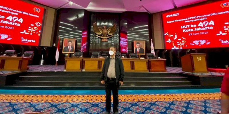 Sehari sebelumnya, Senin (21/6), Ketua DPRD DKI Jakarta, Prasetio Edi Marsudi mengecek langsung persiapan pelaksanaan rapat paripurna istimewa yang digelar secara daring dan luring dengan protokol kesehatan yang sangat ketat.