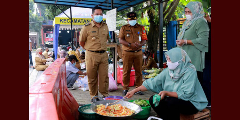 Untuk memenuhi kebutuhan pangan masyarakat Kota Tangerang yang menjalani isolasi mandiri di rumahnya masing-masing, Pemkot telah membentuk dapur umum di kantor Kecamatan Pinang.