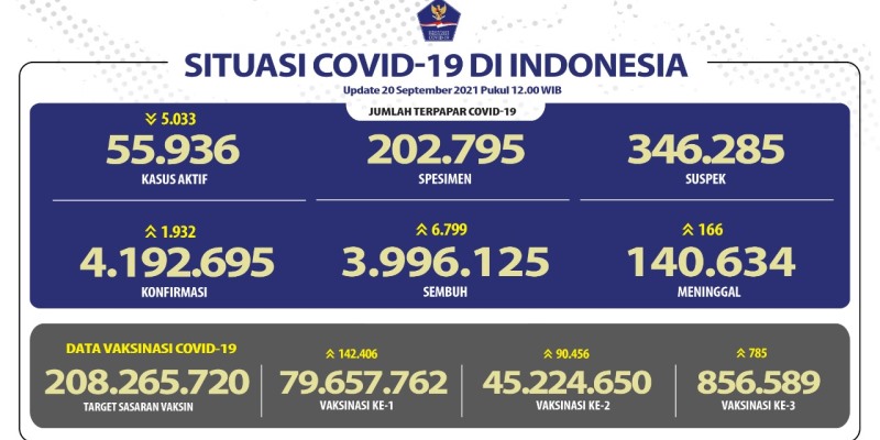 Untuk kasus tambahan harian sebanyak 1.932 pasien. Total kasus sejak awal pandemi hingga saat ini sebanyak 4.192.695 kasus.