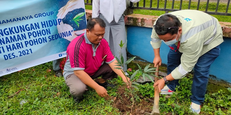 Pada kesempatan itu secara simbolis Priamanaya Group juga melakukan penanaman pohon jenis Mangga dan Rambutan di lingkungan sekolahan bersama siswa dan para guru.