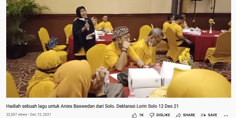 Dalam video berdurasi 3 menit 50 detik tersebut, salah seorang perempuan meminta izin untuk menyanyikan lagu untuk Anies Baswedan. Momen tersebut terjadi saat deklarasi dukungan kelompok Sobat Anies sebagai calon Presiden 2024.
