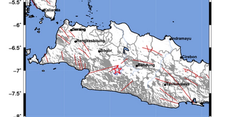 Pusat gempa berada di darat 18 kilometer Tenggara Kabupaten Cianjur, tepatnya di koordinat 6.99 Lintang Selatan-107.16 Bujur Timur.