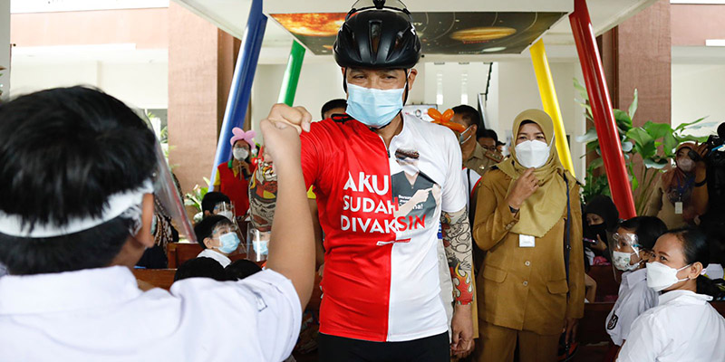 Ganjar mengatakan, capaian vaksinasi anak-anak di beberapa kabupaten di Jawa Tengah sudah di atas 60 persen. Dia berharap semua kota dan kabupaten berlomba-lomba menggenjot vaksinasi anak-anak.