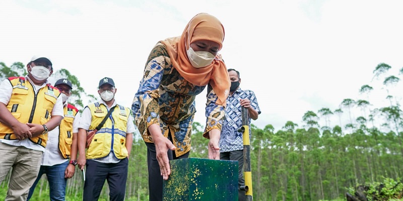Khofifah terlebih dahulu mendatangi titik nol atau titik kontrol Geodesi yang akan menjadi patokan pembangunan infrastruktur Ibu Kota Negara Nusantara (IKN).