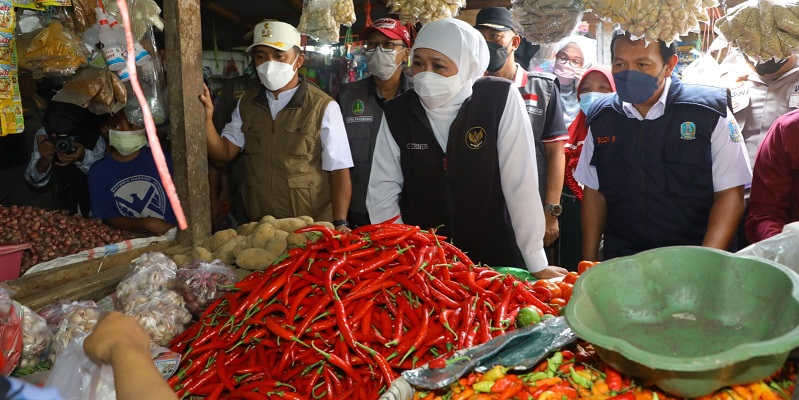 "Alhamdulillah, stok relatif aman meski ada beberapa kebutuhan pokok yang naik seperti cabai merah , cabai rawit dan bawang merah. Kenaikan diduga akibat faktor cuaca," ungkap Khofifah usai peninjauan.