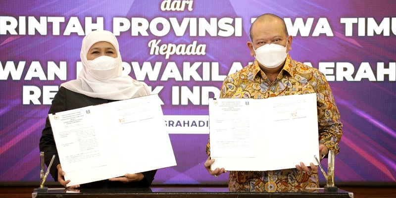 Sementara itu, Ketua DPD RI, La Nyalla menyampaikan terima kasihnya kepada Pemprov Jatim yang telah koorperatif dan responsif atas tindak lanjut permintaan hak pakai atas hibah tanah Pemprov Jatim sebagai kantor DPD RI perwakilan Jatim.