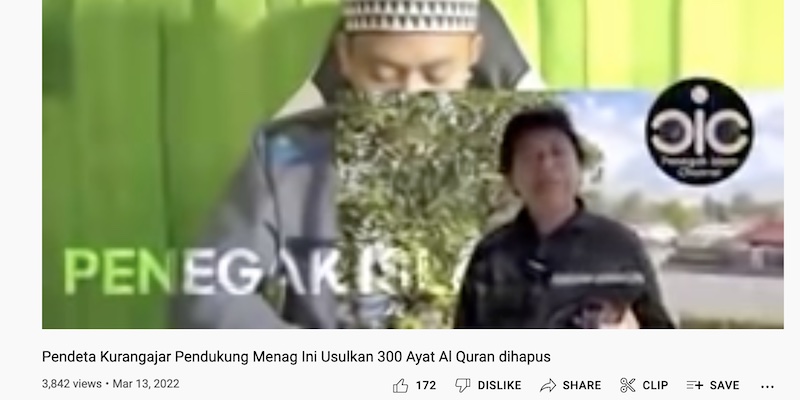 Selain itu, video tersebut juga tersebar di Youtube kanal NU Garis Lurus dengan judul "Pendeta Kurangajar Pendukung Menag Ini Usulkan 300 Ayat Al Quran dihapus", sejak Minggu (13/3).