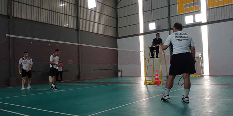 Kantor Berita Politik RMOL di lokasi, Firli Bahuri beserta para pemain legendaris badminton lainnya tengah beristirahat karena pertandingan usai dengan skor imbang 1-1.