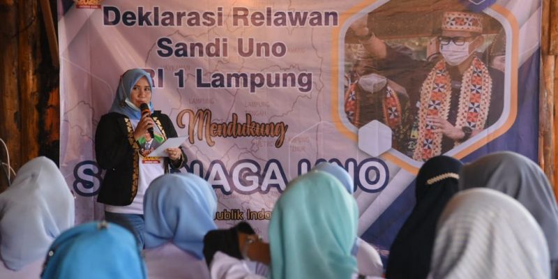 Relawan Sandi Uno RI 1 Lampung yang dimotori kelompok milenial, petani, emak-emak hingga pelaku UMKM ini, mendeklarasikan diri di Wisata Kampung Vietnam, Kecamatan Kemiling, Kota Bandar Lampung.