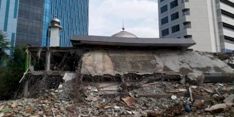 Namun yang terjadi, masjid tersebut hampir rata dengan tanah karena proses pembongkaran tetap dilakukan PT GLD Property dengan izin dari nazhir Masjid.