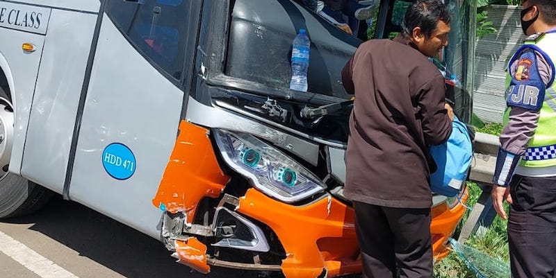 "Ada empat kendaraan yang terlibat dalam kecelakaan beruntun ini kendaraan Bus Rosalia Nopol AD-7191-OF supir SY, kendaraan Daihatsu Luxio Nopol B-1548-POV supir AS, kendaran Daihatsu Xenia Nopol B-1896-FKT supir HS, dan kendaraan Daihatsu Xenia Nopol F-1248-HT supir AG," kata Budi dalam keterangan tertulis yang diterima redaksi, Jumat (29/4).