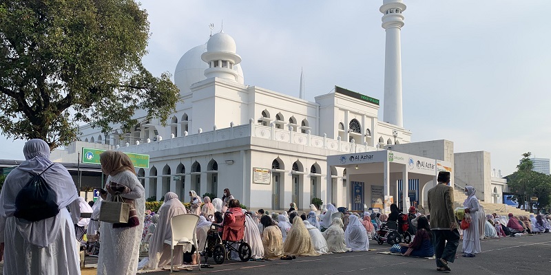 Area lapangan teras Masjid Agung Al-Azhar di Kebayoran Baru, Jakarta Selatan ikut dipenuhi jamaah Shalat Idulfitri 1443 H pada Senin, 2 Mei 2022/RMOL