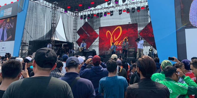 perform menarik perhatian pengunjung Formula E. Sontak, ketika musik dinyalakan, semuanya berteriak dan jingkrak-jingkrak sambil bernyanyi menikmati band idola mereka.