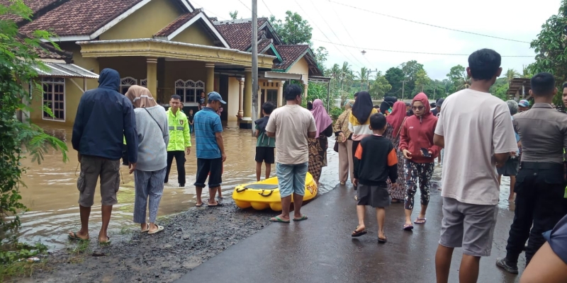 Pada saat kejadian, hujan dengan intensitas sedang mengguyur wilayah tersebut sejak dini hari sehingga memicu terjadinya luapan sungai dan merendam permukiman penduduk, persawahan, dan jalan raya.