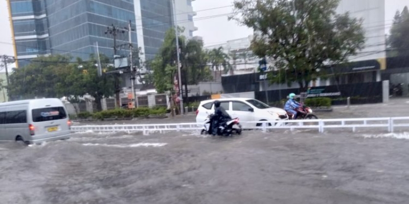 "Ini hampir semua banjir, rata ini Semarang. Di Mangkang, Gayamsari, pokoknya rata. Untuk masyarakat sebaiknya jangan keluar rumah dulu," demikian kata Adhi.