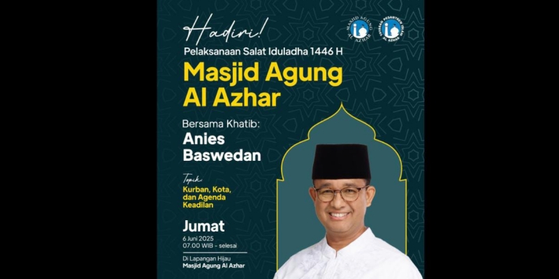 "InsyaAllah, saya mendapat amanah menyampaikan khutbah Iduladha 1446 H di Masjid Agung Al Azhar, pada Jumat, 6 Juni 2025 pukul 07.00 WIB," tulis Anies dikutip Rabu 4 Juni 2025.