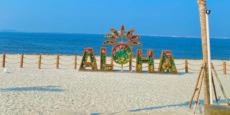 Sensasi pasir putih di Aloha Beach membawa kedamaian serta pesona keindahan negeri bahari yang cocok buat keluarga. Menikmati senja di Aloha Beach benar-benar seperti di Kintamani, Bali.