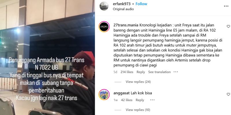 Bahkan menurut akun tersebut penumpang bus 27Trans ditinggalkan di sebuah rumah makan di Subang tanpa pemberitahuan. Pemilik akun membuat tulisan besar.