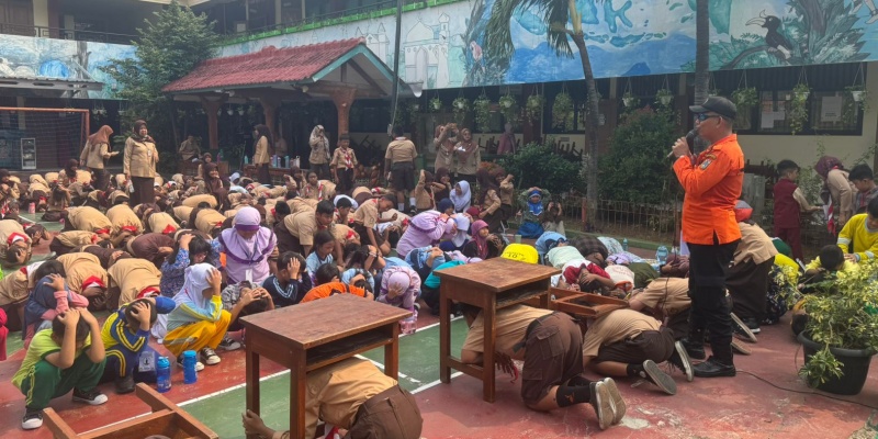 Para siswa dikenalkan dengan jenis-jenis bencana yang berpotensi terjadi di Jakarta seperti banjir, gempa bumi, kebakaran, dan cuaca ekstrem.
