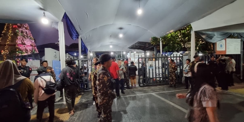Kantor Berita Ekonomi dan Politik RMOL di lokasi, Banser tampak menjaga pintu gerbang utama Katedral, tepat berhadapan di seberang Masjid Istiqlal.