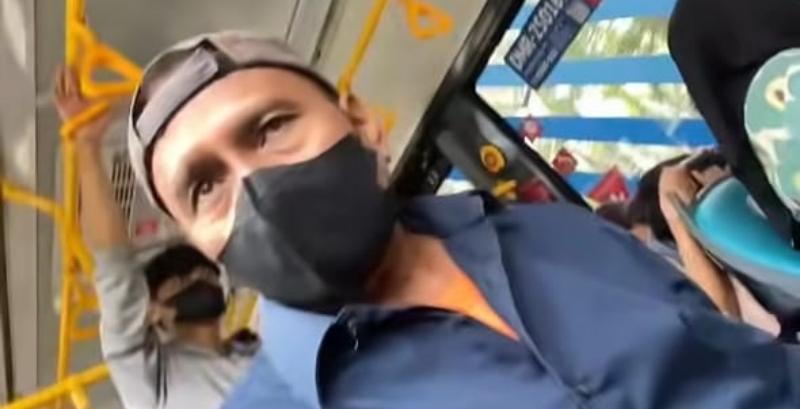 Saat identitasnya coba didokumentasikan oleh petugas, pelaku bersikap tidak kooperatif dengan enggan membuka masker secara penuh dan berusaha segera turun dari bus.