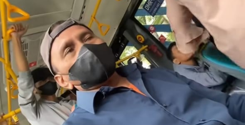 Saat identitasnya coba didokumentasikan oleh petugas, pelaku bersikap tidak kooperatif dengan enggan membuka masker secara penuh dan berusaha segera turun dari bus.