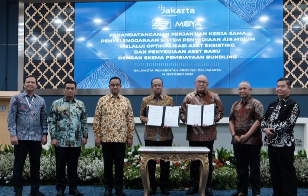 Keduanya menandatangani kerja sama pada 14 Oktober 2022. Kerja sama ditujukan untuk mempercepat cakupan layanan air perpipaan hingga 100 persen di Jakarta pada 2030. Skema yang digunakan adalah pembiayaan bundling, di mana PT Moya Indonesia mengoperasikan instalasi pengolahan air sebagai unit produksi dalam sistem penyediaan air minum (SPAM).