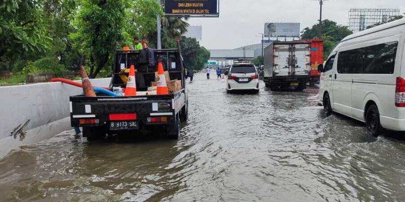 Namun, intensitas hujan yang terus meningkat dan berlangsung cukup lama menyebabkan limpasan air dari kawasan sekitar masuk ke saluran air jalan tol dan menimbulkan genangan di badan jalan.