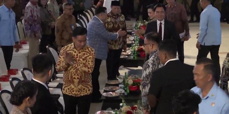 Gibran hadir mengenakan batik cokelat dan disambut langsung oleh Yusril, sambil menyalami sejumlah tamu VVIP yang hadir.