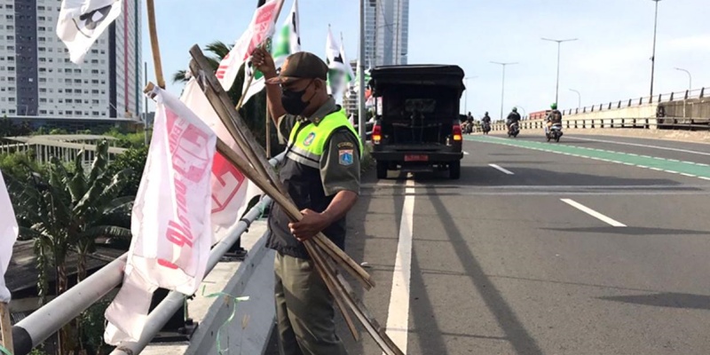 “Selain flyover, larangan juga berlaku di sejumlah ruas jalan utama seperti Sudirman-Thamrin, serta kawasan sekitar Jalan Merdeka atau Monas. Namun, di lokasi lain masih diperbolehkan sesuai ketentuan, dengan pengecualian flyover yang sepenuhnya dilarang untuk pemasangan atribut,” tandasnya.