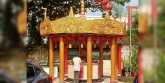 Sementara, di area luar vihara tampak anak-anak kecil yang merupakan warga sekitar berbaris rapi bersama petugas keamanan yang berjaga.