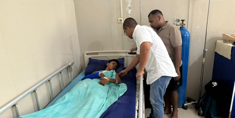 Pada kesempatan tersebut, Yos berbicara langsung dengan korban NK yang sedang mendapat perawatan, dimana tangan kanan cedera berat.