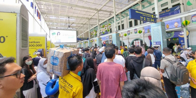 Stasiun Pasar Senen menjadi titik terpadat pada gelombang mudik hari ini, yakni ada 23.259 penumpang. Sedangkan Stasiun Gambir 17.198 penumpang.