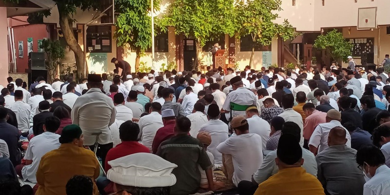 Pelaksanaan salat Id di Lapangan Sekolah Perguruan Tinggi Islam Ruhama Labshool, yang berada di Jalan Tarumanegara Nomor 67, Pisangan, Ciputat Timur.. (Foto:RMOL/ Faisal Aristama)
