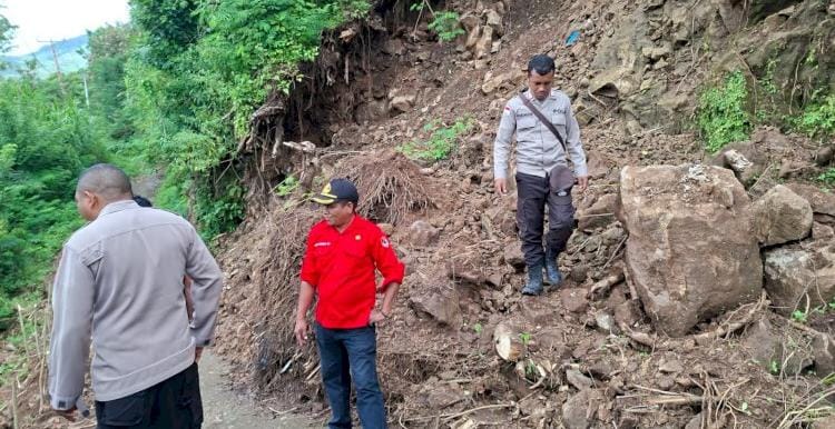 "Material longsor menimbun badan jalan di dua titik sehingga menyebabkan akses utama warga terputus dan aktivitas perekonomian terganggu," sambungnya memaparkan.