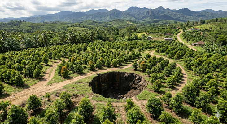 Seiring waktu, ukuran lubang dilaporkan membesar hingga mencapai diameter sekitar 10 meter dengan kedalaman kurang lebih empat meter. Kondisi ini menimbulkan kekhawatiran warga, terutama karena lubang muncul di lahan produktif.