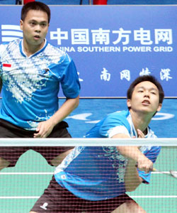 Pasangan ganda putra Merah Putih, Markis Kido/Hendra SeÂtiaÂwan berhasil menyumbang saÂtu medali emas. Menyusul jeÂjak KiÂdo/Hendra, pasangan ganda putera lainnya yaitu Alven YuÂlianÂto/ Muhammad Ahsan memÂpersembahkan medali perunggu. Dengan perolehan ini cabor buÂluÂtangkis tercatat menyumbang empat medali yang terdiri dari satu emas dan tiga perunggu. Dua perunggu lainnya diperoleh dari nomor beregu putra dan putri.