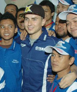 Para fans, yang terÂbagi menjadi empat grup, berÂfoto bersama sang pebalap deÂngan latar belakang iklan moÂtor Yamaha dan wajah LoÂrenÂzo. Sayang, setelah sesi foÂto-foto selesai, Lorenzo langsung meninggalkan acara.