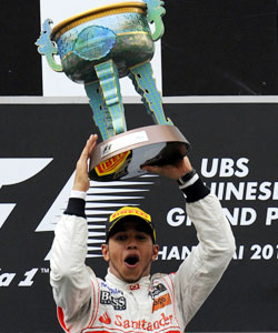 Vettel harus puas finis di poÂsisi kedua atau tertinggal 5,2 deÂtik di belakang Hamilton, seÂmenÂtara rekan setimnya di Red Bull Mark Webber, sukses naik podiÂum untuk pertama kalinya musim ini setelah finis di posisi ketiga.